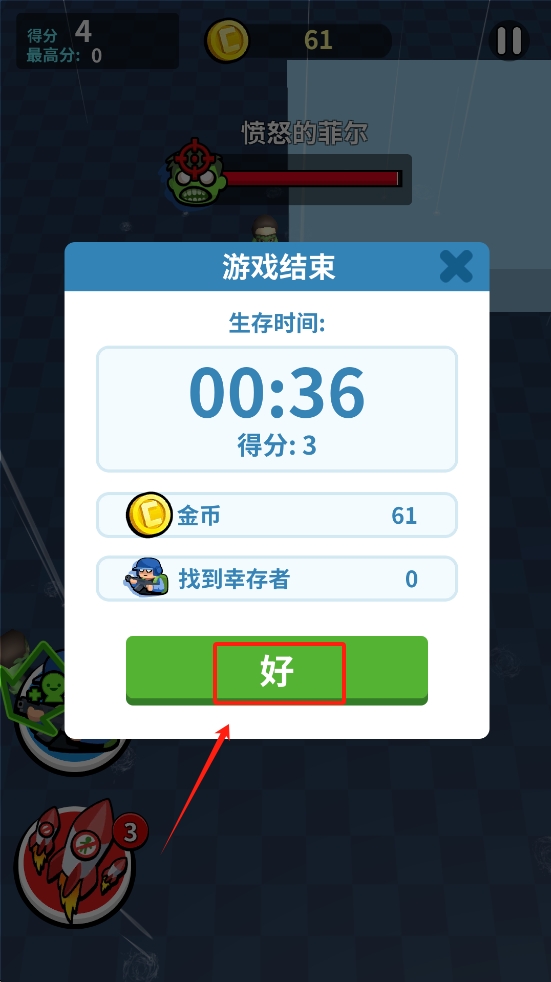 3、游戏结束后,点击“好”按钮,确认结果并返回主界面。