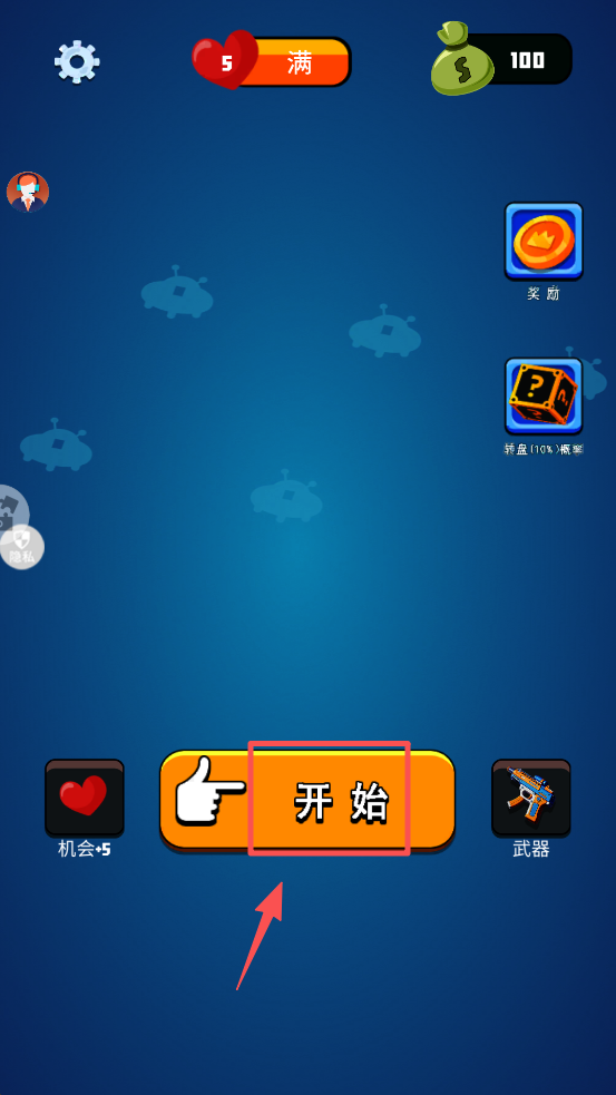1、点击“开始”按钮,进入游戏,准备迎接挑战。