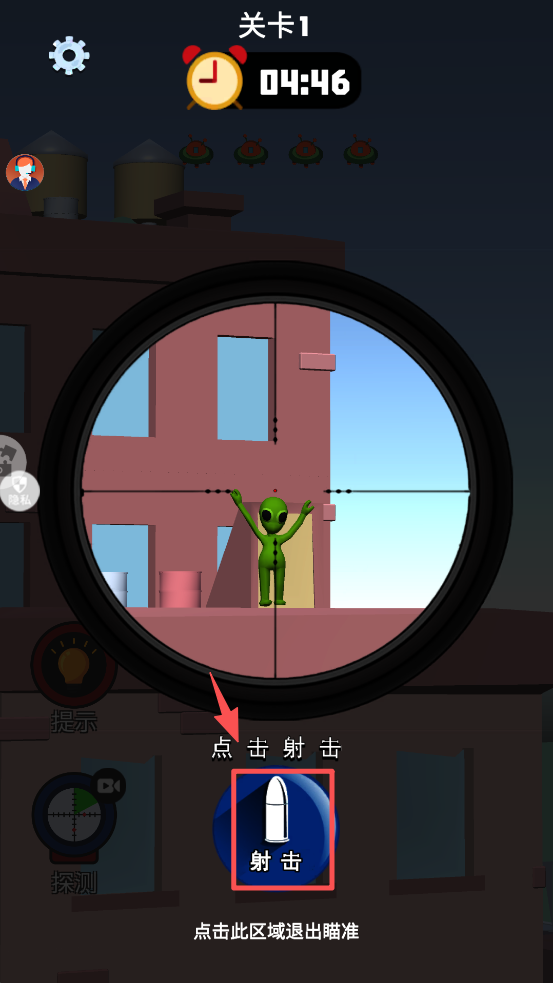 2、使用瞄准镜对准目标,点击“射击”按钮进行攻击。