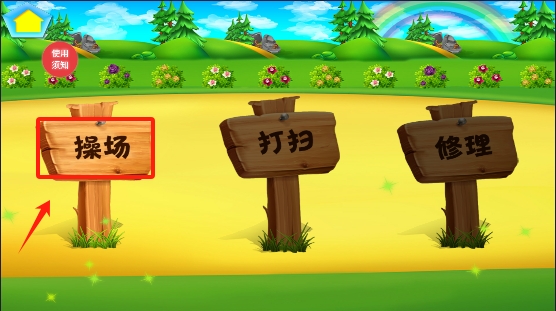 2、在操场界面,点击割草机图标,开始修剪草坪,保持环境整洁。