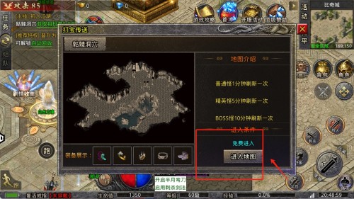 3、点击进入地图,击败怪物,获取丰富奖励。