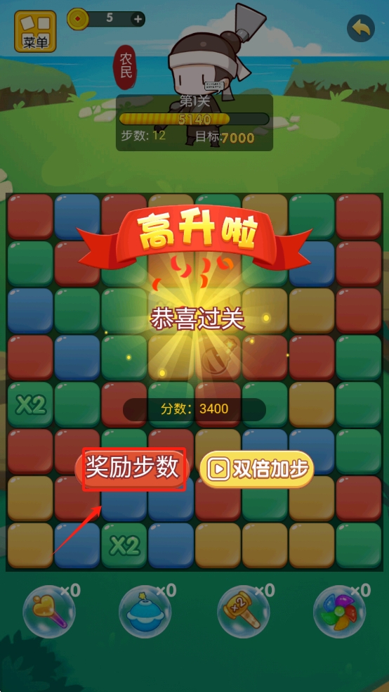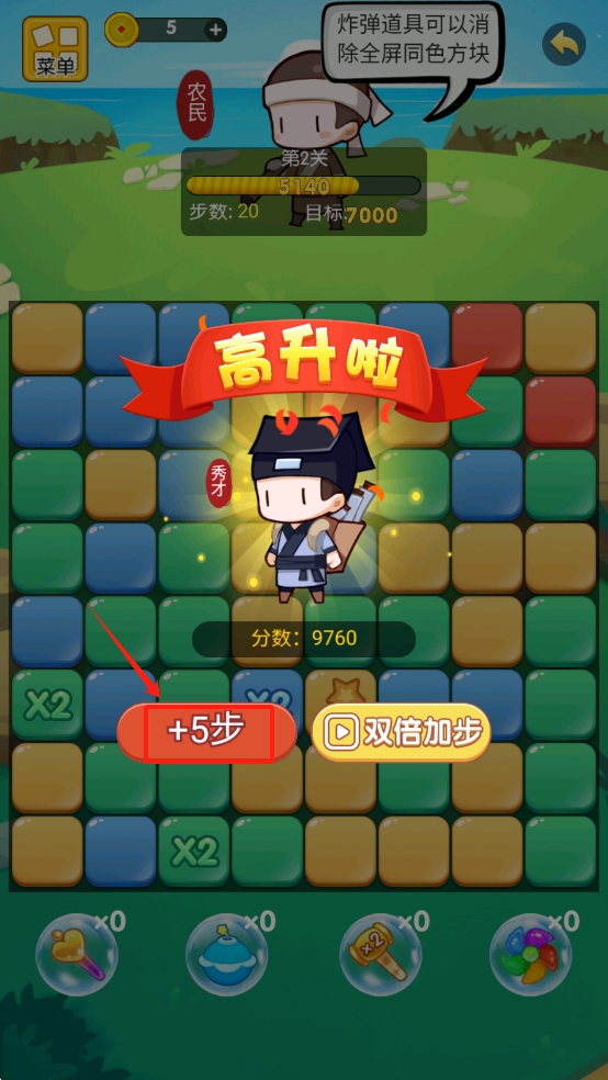 4、点击“+5步”按钮增加步数,继续游戏。