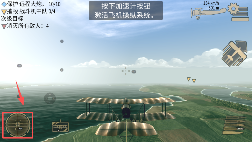 4、最后,在游戏内使用操纵杆控制飞机,完成各种任务目标,体验空战乐趣。