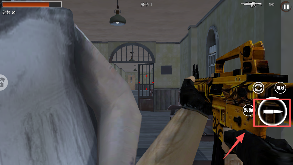 3、使用屏幕上的射击按钮进行攻击,消灭敌人,完成关卡目标。