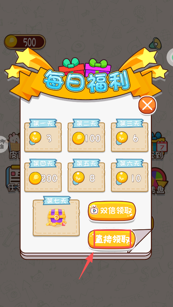 2、在每日福利界面,点击“直接领取”按钮。