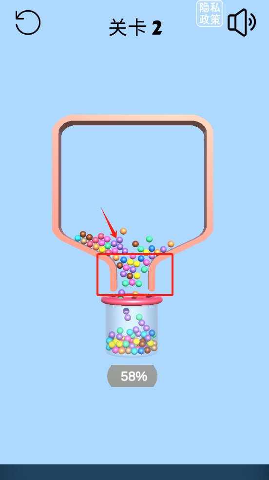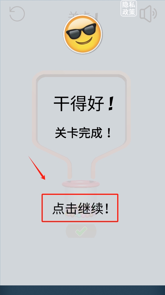 2、当所有小球都落入容器后,点击“点击继续!”进入下一关。