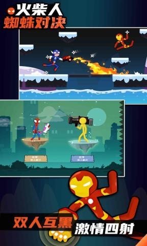 1.在火柴人蜘蛛对决免广告版下载中,玩家可以选择多个火柴人英雄进行战斗,在梦幻般的游乐场中展开激烈的对决。