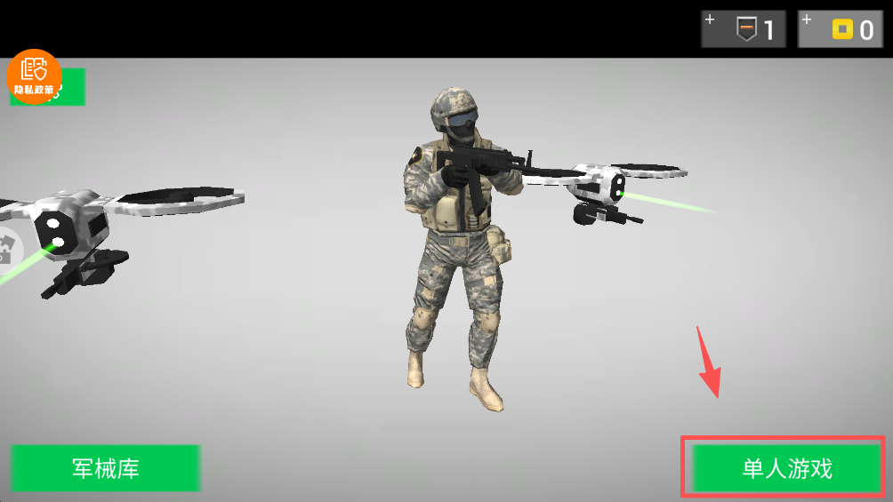 1、点击主界面的“单人游戏”按钮,选择单人游戏模式开始游戏。