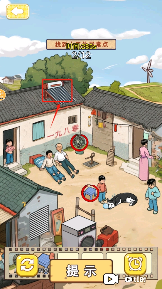 3、然后,注意观察细节,如屋顶的太阳能板或墙上的钟表,这些都是可能的找茬点。