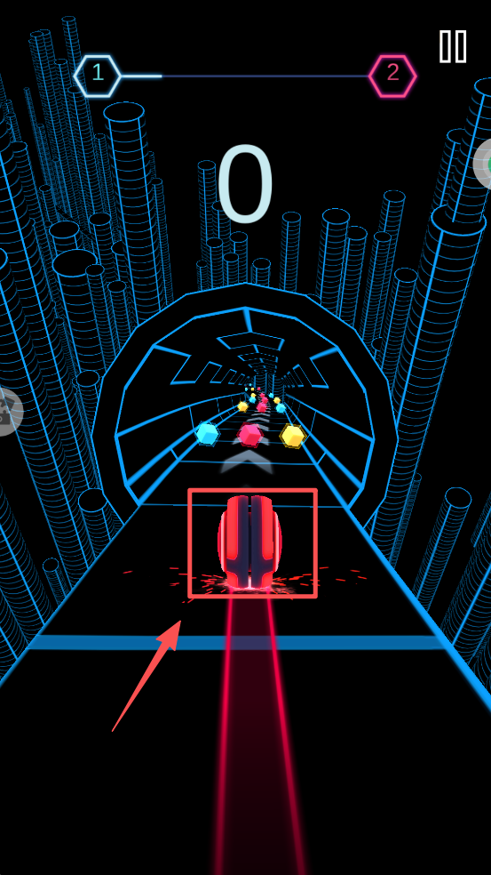 3、使用屏幕上的虚拟按钮控制车辆左右移动,避开障碍,向前冲刺。
