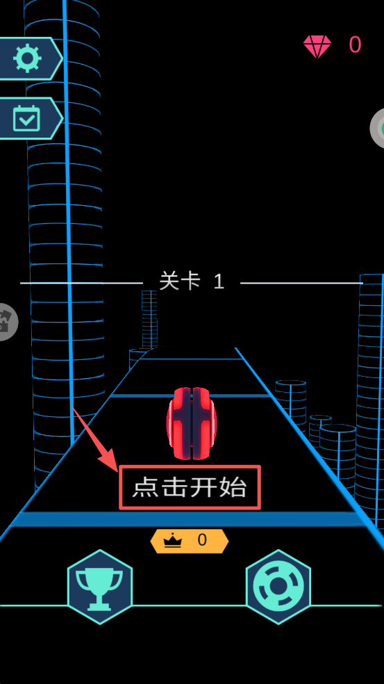 2、在主界面选择关卡1,点击“点击开始”按钮,开始你的赛车挑战。