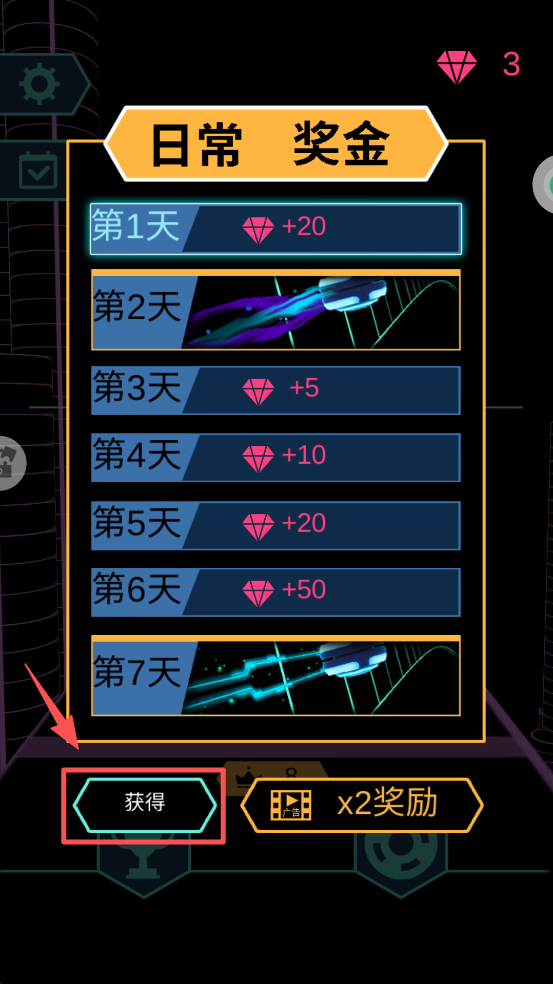 4、在游戏主界面点击“日常奖金”,领取每日登录奖励,积累更多游戏资源。