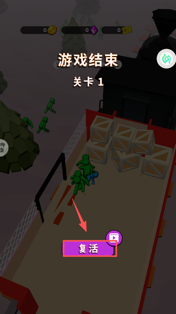 3、游戏结束后,点击“复活”按钮继续挑战或重新开始。