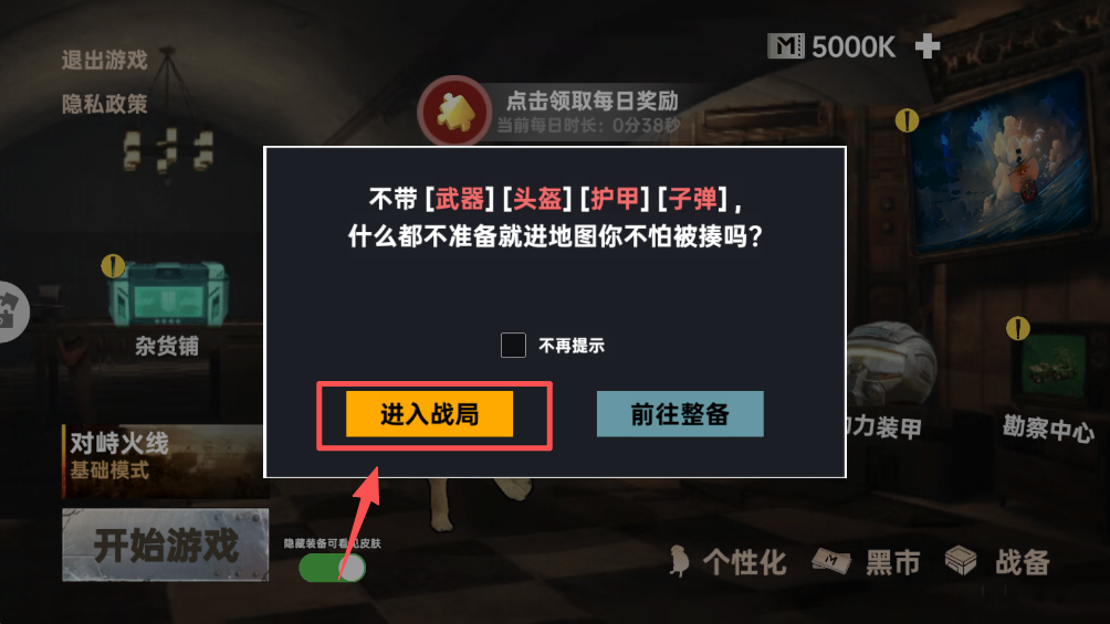 2、选择“进入战局”开始游戏,或“前往整备”准备装备。