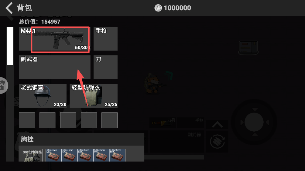 2、在背包界面,查看并选择你的主武器,如M4A1。