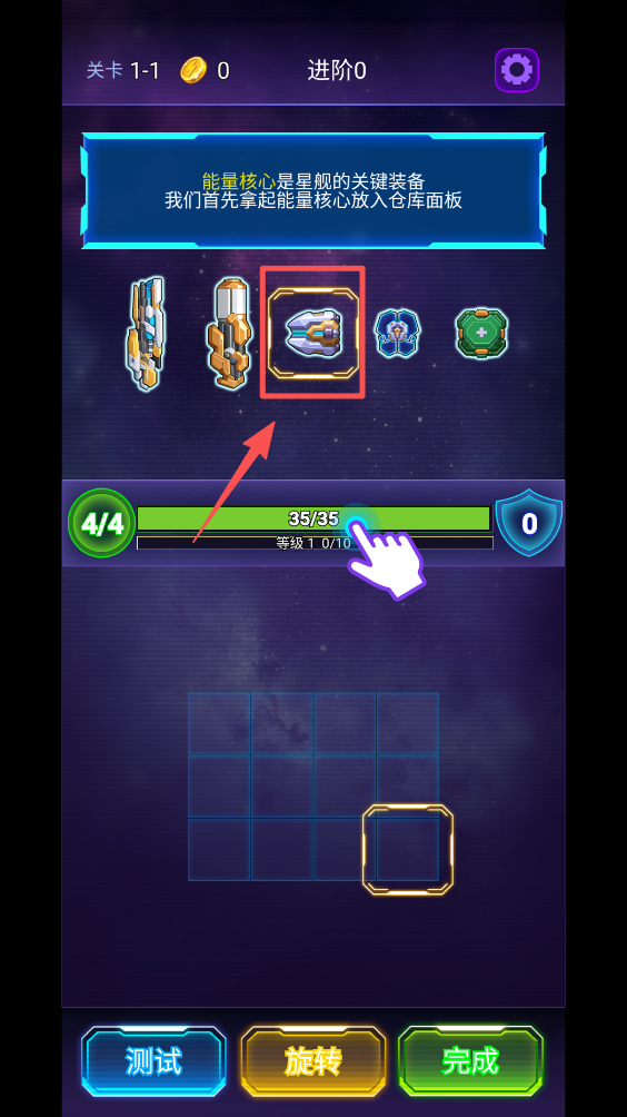 3、按照提示将能量核心放入仓库面板,准备战斗。