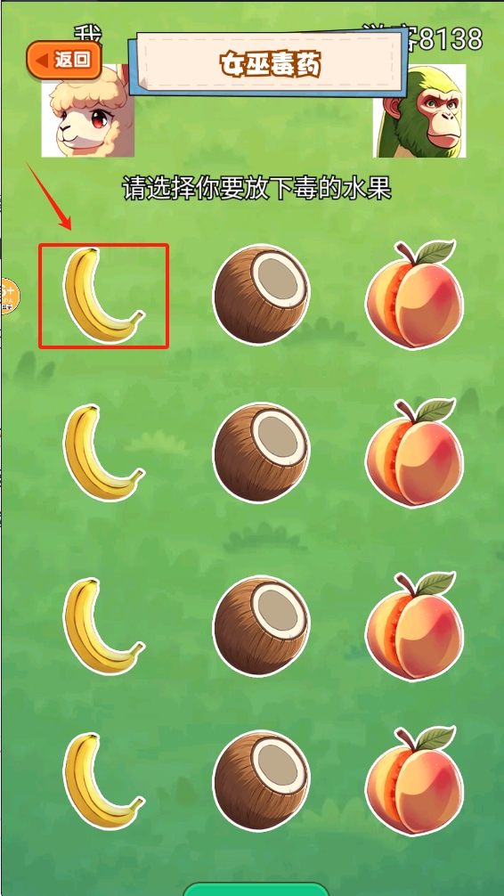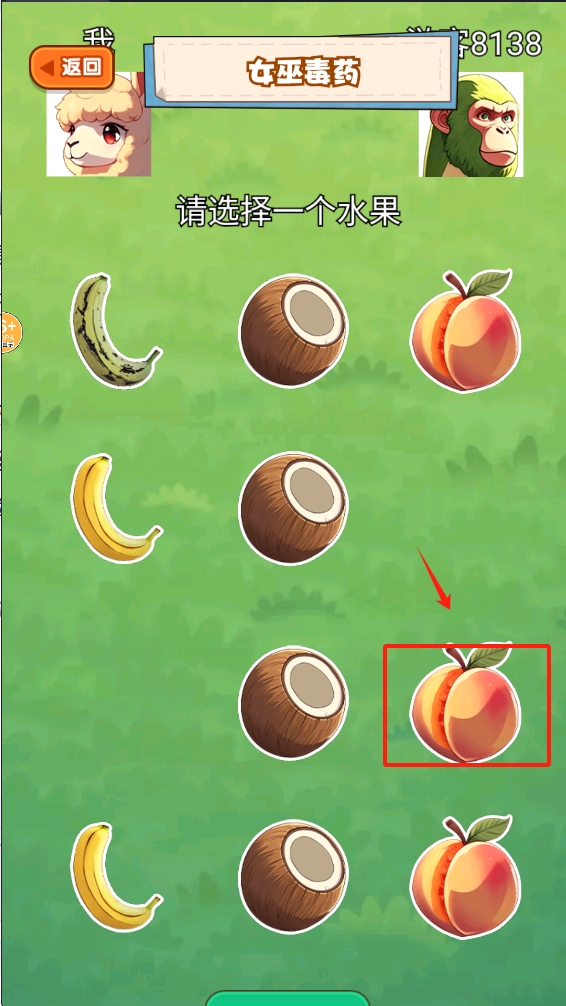 3、在“女巫毒药”游戏中,选择你要放下毒的水果。