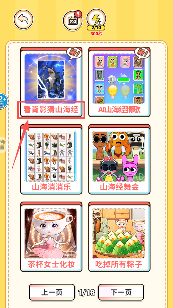 2、浏览不同游戏模式,选择“看背影猜山海经”开始挑战。