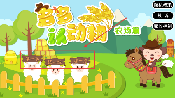 2、动物认知玩法:通过与农场动物互动,聆听动物叫声,观察动物形态,认识不同动物特点,丰富动物知识储备。