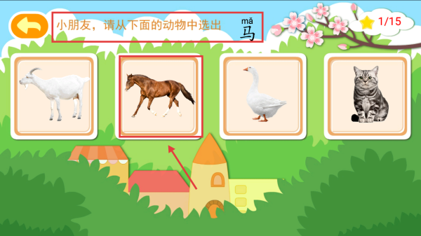 2、根据题目要求,点击【马】的图像,选对了就可以获得一颗小星星。