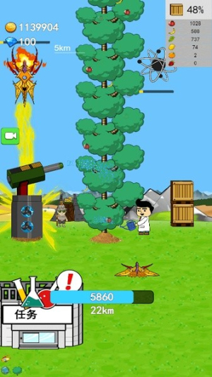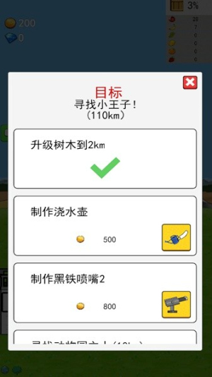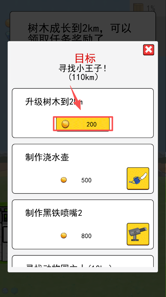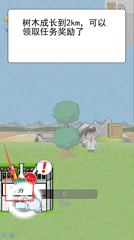3、当树木长到 2km 时,点击 “任务” 按钮,查看可领取的奖励。