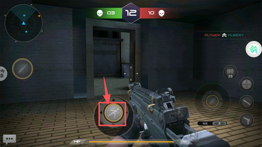 2、在游戏中,通过右侧的虚拟摇杆控制人物视角转动。