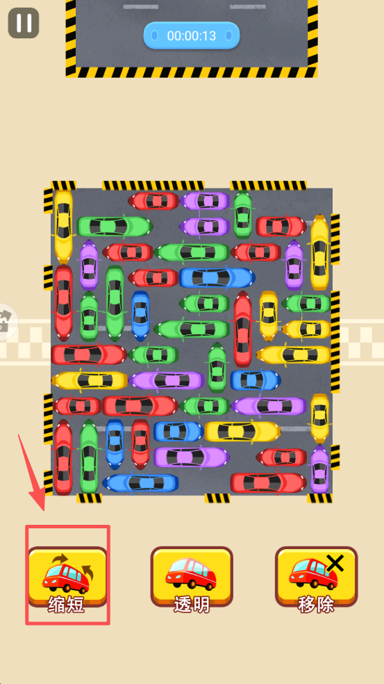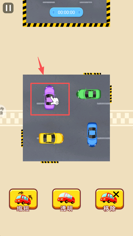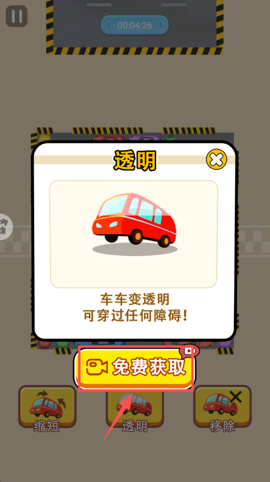 4、点击“透明”按钮,车车变透明可穿过任何障碍,完成关卡。