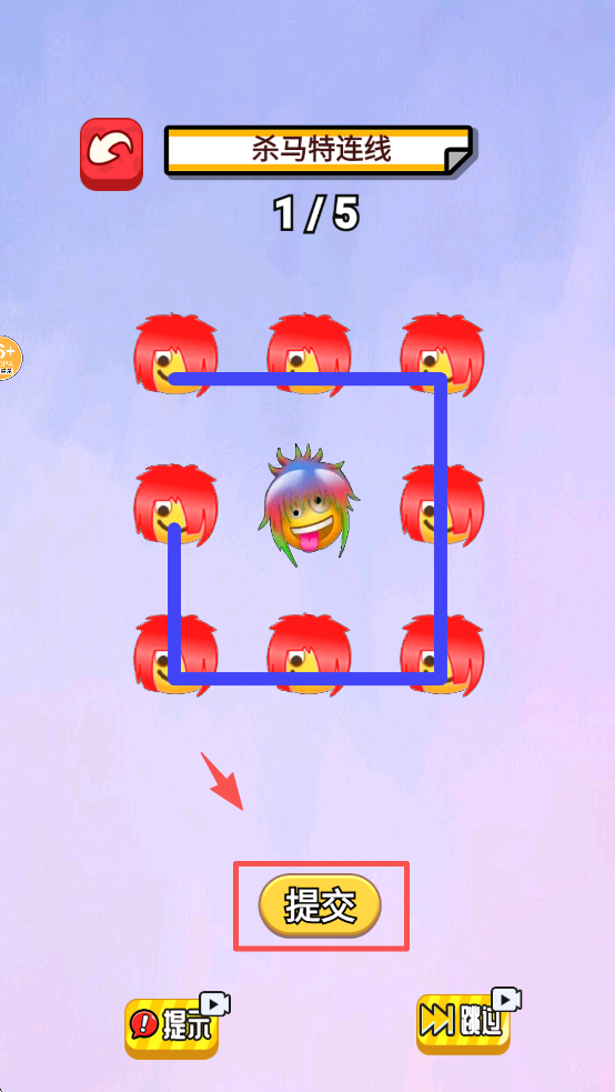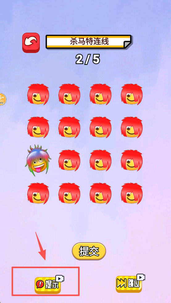 2、在游戏中,通过画线连接相同的表情,完成后点击“提交”按钮。