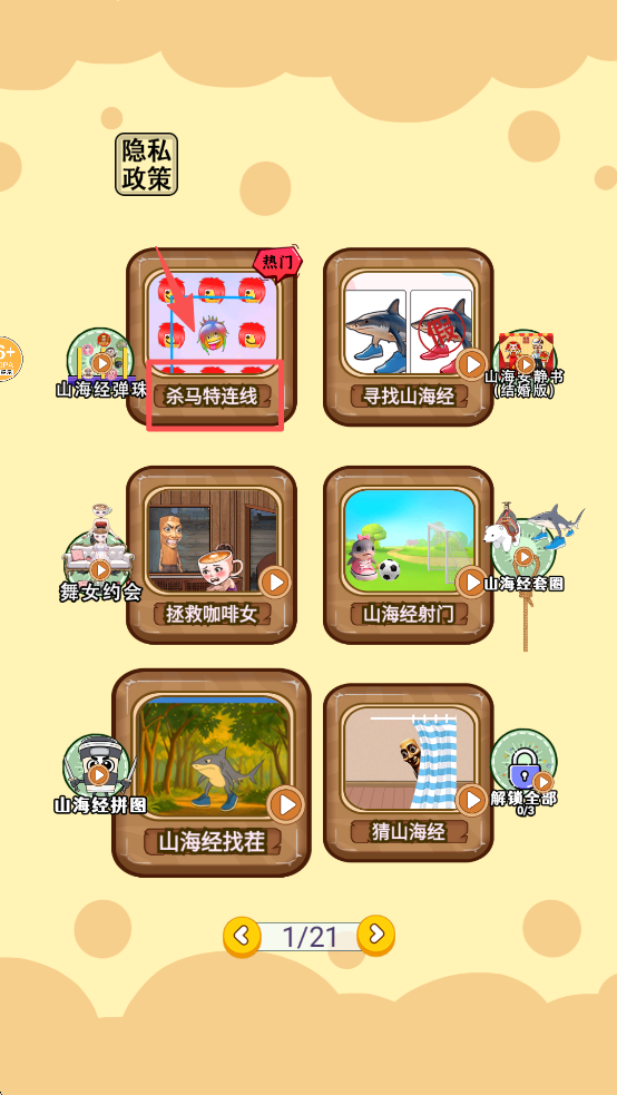 1、在游戏选择界面,点击“杀马特连线”等游戏图标,开始你的游戏挑战。