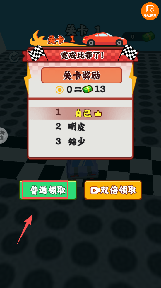 4、完成比赛后,点击“双倍领取”以获取更多奖励,提升游戏进度。