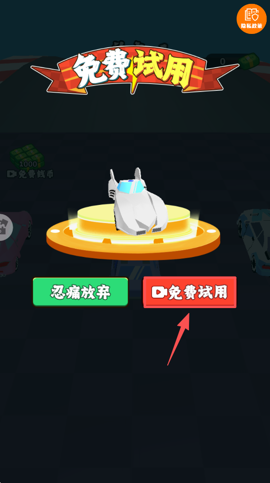 2、在车辆选择界面,点击“免费试用”按钮,体验不同车辆的性能。