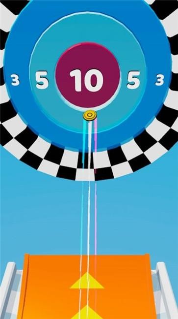 3、游戏画面简单简洁,没有复杂的操作。善用简单的物理让飞盘旋转飞进去。