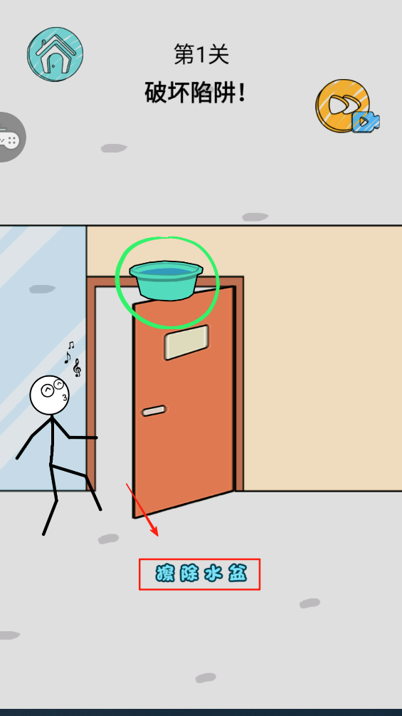 2、开始游戏,点击关卡中的“擦除水盆”进行游戏操作。