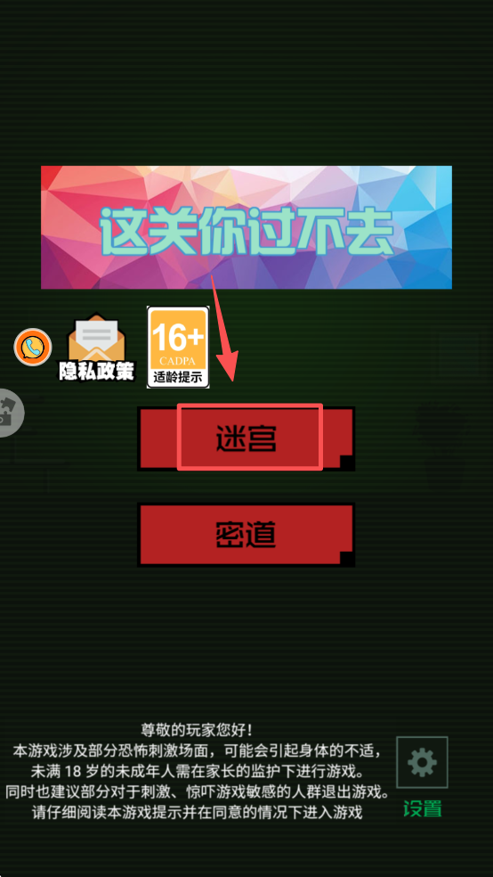 1、点击“迷宫”按钮进入游戏。注意查看适龄提示,确保符合年龄要求再开始游戏。