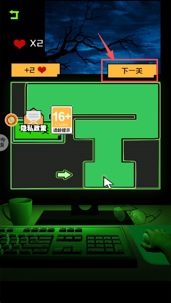 3、点击“下一关”按钮继续游戏。游戏中会显示当前生命值,注意保持生命值。