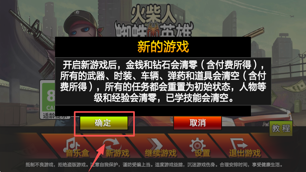2、阅读新游戏提示后,点击 “确定”,正式开启新游戏。