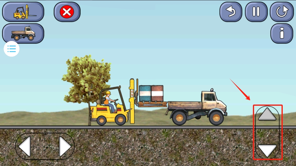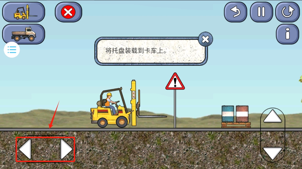 3、使用屏幕上的控制按钮,将货物装载到卡车上,完成任务目标。