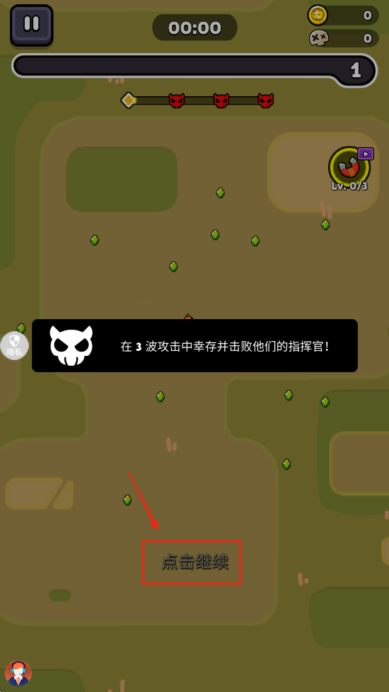 2、点击“点击继续”按钮,开始你的第一波防御,准备迎接敌人。