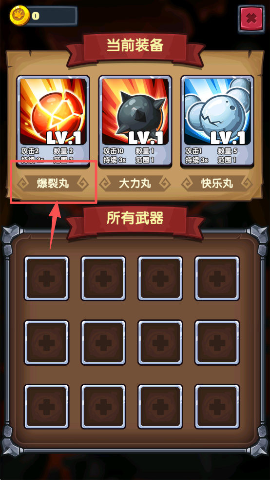 3、在装备界面,点击“爆裂丸”并选择“升级”,提升武器威力。