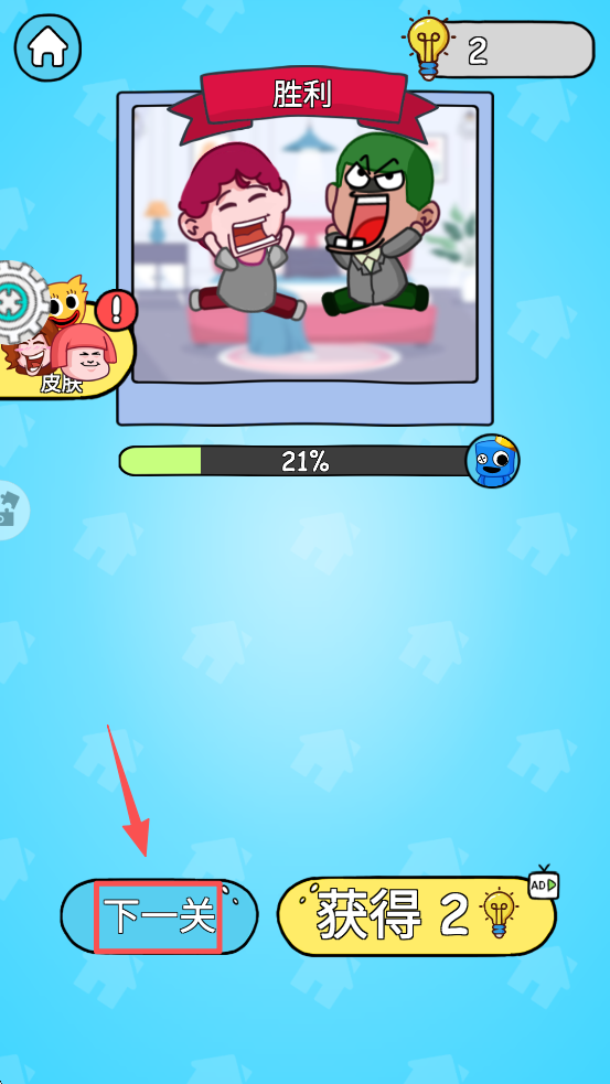 4、点击“下一关”按钮,完成当前关卡后进入下一关。