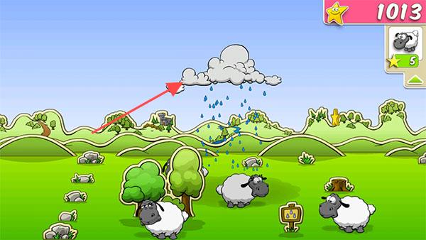 3、按照箭头指示方向,操控相关元素(如云朵)移动,触发下雨等游戏事件。