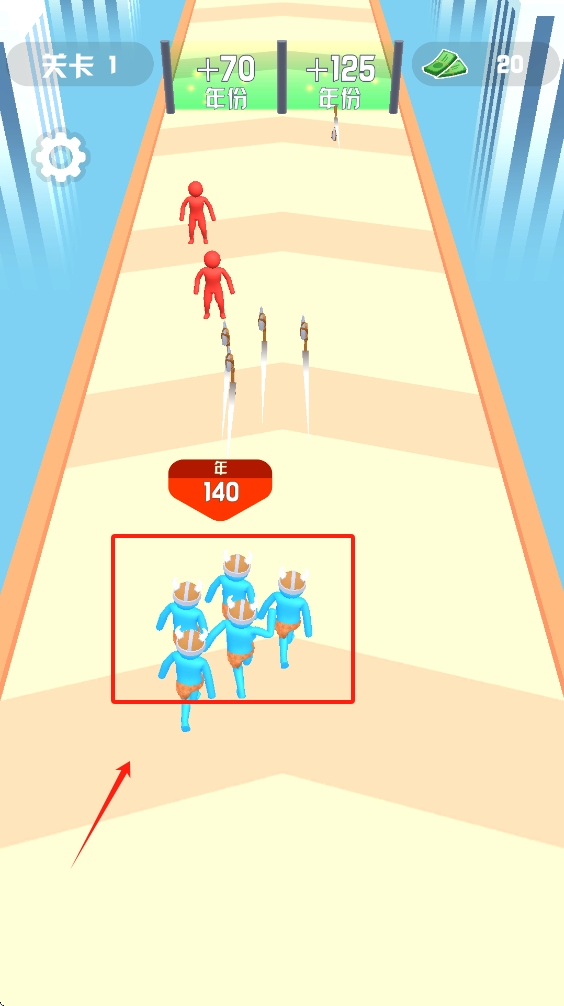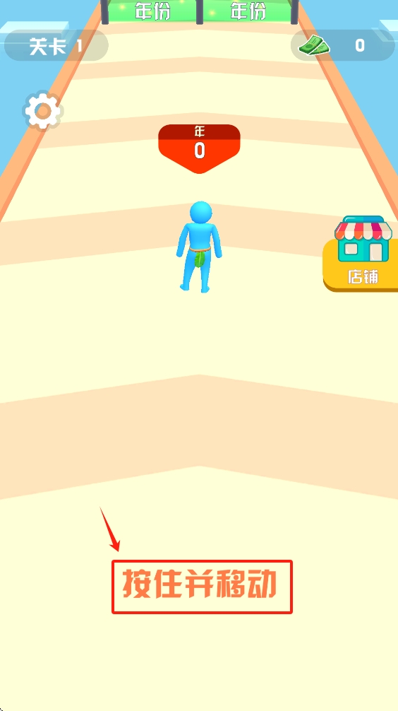 1、在游戏主界面,按住屏幕并移动,控制角色收集年份资源,增加角色数量。