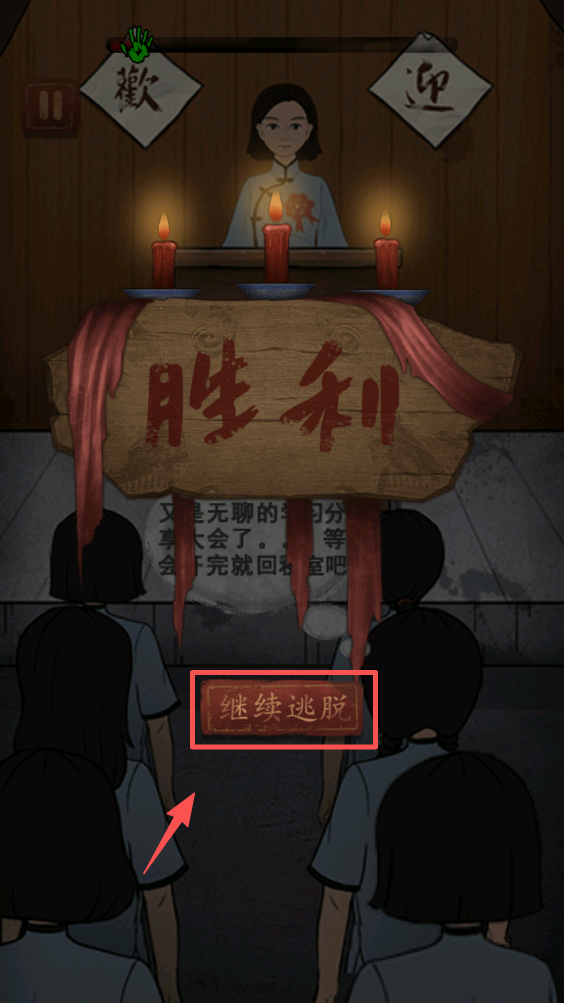 3、点击“继续逃脱”按钮,继续寻找线索,解开谜题。
