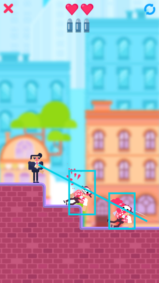 1、物理弹射机制:创新融入物理原理,子弹射击到墙壁会发生反弹,玩家需掌握弹射规律,用一颗子弹完成多目标击杀。