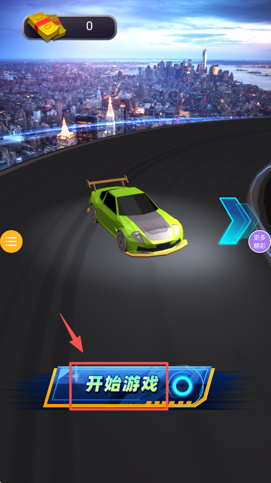 1、点击“开始游戏”按钮,进入游戏主界面,准备开始你的赛车挑战。