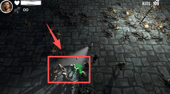 1、玩家在黑暗环境中穿梭移动,搜寻散布的武器、弹药和医疗物品,避开僵尸包围圈,确保基本生存需求。