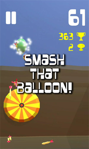 飞镖躁狂是一款休闲有趣的飞镖投掷游戏。在游戏中,玩家需要使用飞镖向不断左右移动的靶子投掷,随着难度的提升将会增加更多妨碍你的障碍物,争取获得更高的分数。玩家还可以在游戏中用获得的蘑菇升级投掷速度的人物移速,方便你更加灵活应对高难度关卡。