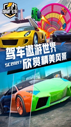 3.疯狂爆破飞车中的,赛车和物理引擎都给玩家带来了极大的乐趣和刺激。