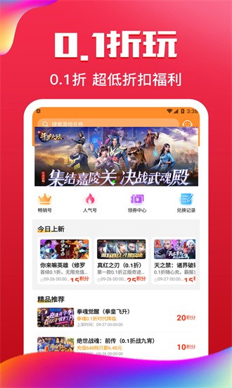 0.1折游戏可以为玩家带来不一样的游戏体验,这里有海量的手游提供,涉及到非常多的类型,你可以直接点击下载畅玩。并且平台还会发放一些游戏礼包,你还能在社区中与其他玩家交流