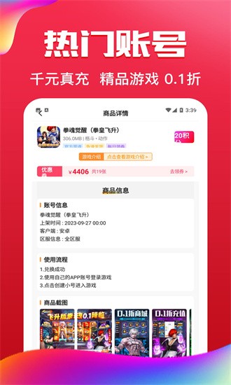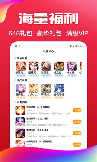 是一款福利超齐全的游戏盒子,涵盖传奇手游、卡牌回合制手游、三国志手游、模拟养成游戏、色扮演手游,放置挂机手游等千款游戏选择。为你提供0.1折游戏,BT游戏,折扣游戏、变态游戏等各种优质账号。让你省钱玩游戏。